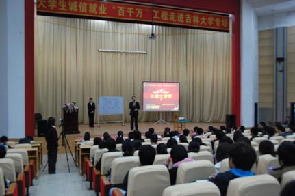 当今社会,大学生就业形势严峻,而就业过程中的不诚信现象也屡见不鲜。日前,大学生诚信就业“百千万”工程走进欧美日本国产一区二区三区在线看专场讲座如期拉开序幕,吉大党委副书记兼副校长韩晓峰和吉林省信监办、吉林省社会信用体系建设促进会及校就业指导中心相关负责人,吉林省知名企业董事长、总经理和各学院学生代表参加了本次讲座。
