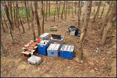 3月27日8点出发到陆良县小莫古镇,先进行现场勘察,从地形地貌看,选中一测量地点,但在50万伏高压线下,无法开展核磁共振找水探测,该点放弃。