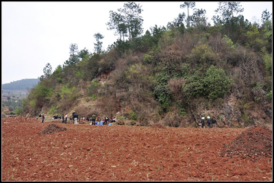 8点,找水专家从昆明启程赶往陆良县,12点左右对陆良县小白户镇兴隆村周边在当地县、镇领导以及老乡陪同指引下进行野外勘察。
